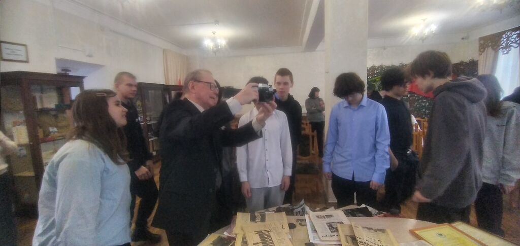 В рамках встречи Николай Георгиевич рассказал обучающимся 9 «А» класса школы № 2 об особенностях работы журналиста, поделился интересными историями, связанными с этой профессией, а также рассказал о своём пути в этой сфере. Ребята познакомились с публикациями Николая Георгиевича, а также с его фотоработами, представленными на персональной выставке «Мир в объективе» в музее. Отдельный интерес у школьников вызвала фототехника, которая в рамках выставки также находилась в зале. Николай Георгиевич охотно рассказал и об особенностях фотосъемки.