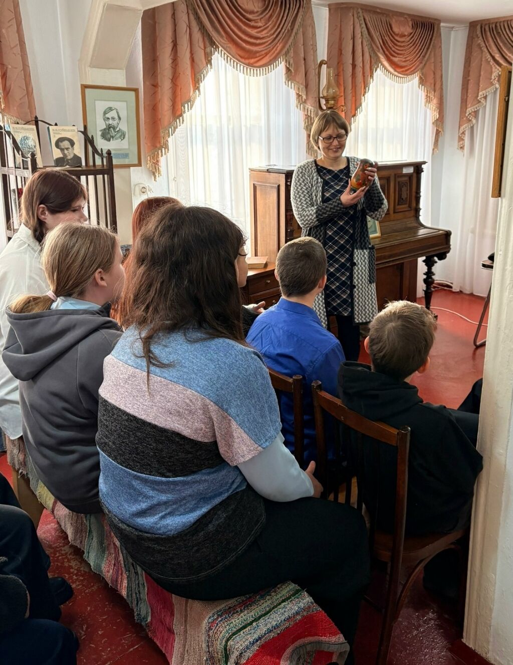 Во время обзорной экскурсии ребята узнали историю дома, где размещается Дом-музей В.В. Куйбышева, через фотографии и документы познакомились с историей политической ссылки в городе Каинск, проследили жизненный путь становления видного политического и государственного деятеля Валериана Владимировича Куйбышева, имя которого носит наш город.