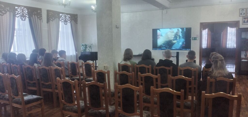 В рамках беседы, состоявшейся в музее, Николай Георгиевич рассказал обучающимся 8-ых классов МКОУ СОШ №9 о подвиге М.П. Девятаева, о заслугах лётчика в области советского ракетостроения, а также о своём личном знакомстве с Девятаевым. После состоялся просмотр биографического документального фильма «Догнать и уничтожить», из которого гости узнали о судьбе лётчика Девятаева.