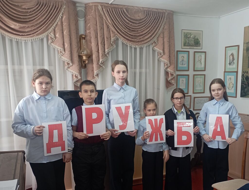 В конце игры ребята из букв, которые они получали за каждое правильно выполненное задание, составили слово «ДРУЖБА», ведь именно дружба позволяет многочисленным народам России на протяжении многих тысячелетий мирно жить на одной территории, делать великие дела на процветание общей Родины – России.