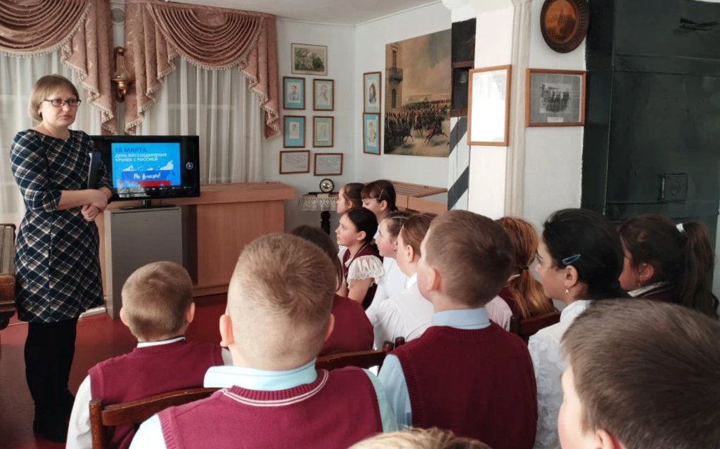 В.В. Путин сказал: «Чтобы понять, почему был сделан именно такой выбор, достаточно знать историю Крыма, знать, что значила и значит Россия для Крыма и Крым для России». Поэтому в ходе экскурса познакомились с историей Крыма и праздничной даты, поговорили об исторической и геополитической роли полуострова Крым в истории и современности России, подчеркнули обоснованность воссоединения с точки зрения мирового права, моральных и этических норм.