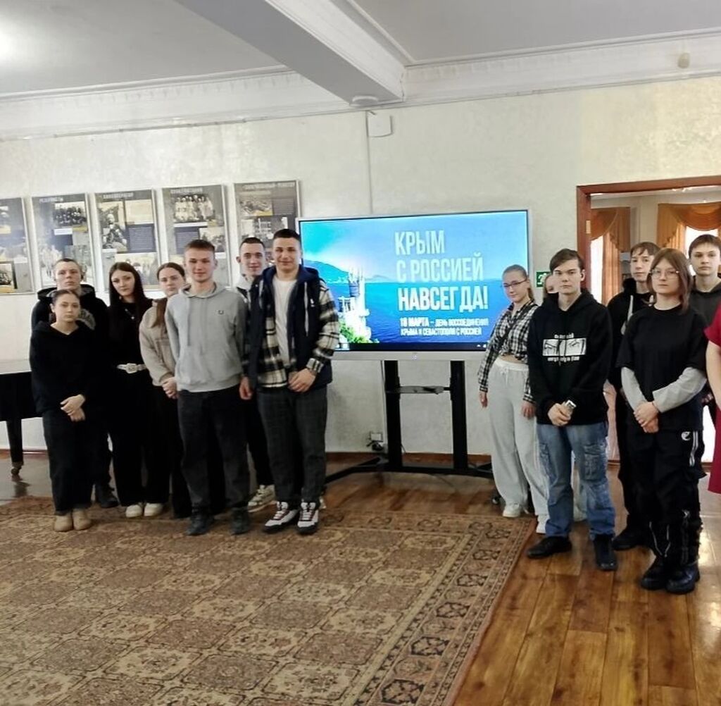 18 марта 2026 года, в день 12-ой годовщины воссоединения Крыма с Россией, в Музейном комплексе г. Куйбышева был проведён Час истории «Крым – частица России» для группы студентов 1 курса ГБПОУ НСО «Куйбышевский политехнический колледж», проживающих в общежитии сельхозотделения.